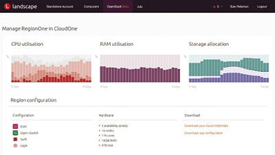 “The tool we’ve developed allows people to go from downloading OpenStack to building a functioning cloud in around four clicks,” says Baker. “We provide a simple but intuitive dashboard that gives you control over how much storage and compute you’re allocating out of what’s available, as well as tools to add or remove capacity.”