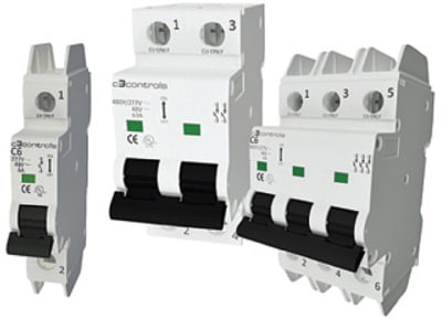 Series 1100 miniature circuit breakers from c3controls, Beaver, PA, feature a 10-kA short-circuit current rating (SCCR), and include both UL 489 Branch Circuit Breakers and UL 1077 Supplementary Protectors. More than 500 configurations are available including one-pole, one plus neutral, two, three, and three plus neutral, with current ratings from 0.5A to 63A, all with thermal and magnetic trip elements for overload and short-circuit protection.