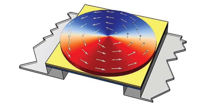 By means of computer simulations that have been validated by experiments, the scientists showed that interference signals, magnetic noise, and hysteresis, can be significantly reduced by redesigning the transducer element. In the new design, the atomic magnetic dipoles of the transducer element are aligned in a circle around a center, similar to a hurricane. An externally applied magnetic field changes the position of the center of this vortex, which in turn leads directly to a change in the electrical resistance. This development shows the first mass application of magnetic vortex structures and is a significant improvement over conventional magnetic sensors according to the researchers.