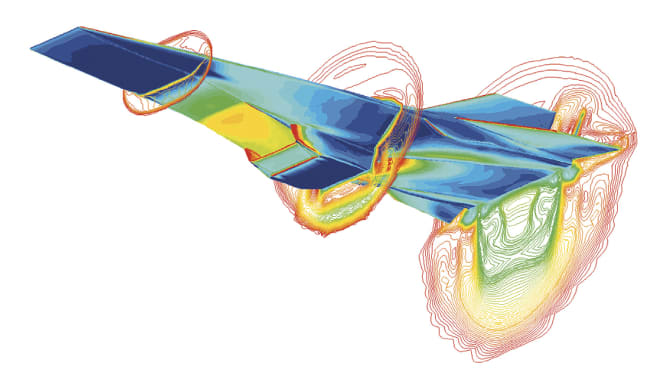 In the 1960s, NASA partnered with industry to develop a common generic software program that engineers could use to model and analyze different aerospace structures, including any kind of spacecraft or aircraft. Today, NASTRAN is an industry-standard tool for computer- aided engineering of all types of structures. NASA’s specialists in computational fluid dynamics, or CFD, made huge strides in matching computer-based, aeronautical design and modeling code to the requirements of real-world flight. NASA developed sophisticated computer codes that could accurately predict the flow of a fluid using complex simulations, such as air over an aircraft’s wing or fuel through a space shuttle’s main engine. Today, CFD greatly reduces the time required to test and manufacture nearly any type of aircraft.