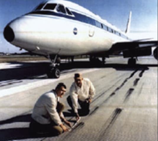 Also in the 1960s, NASA conceived and developed a process for cutting transverse grooves into runways to channel away standing water. Through two decades, NASA conducted more than 1,000 test runs of aircraft and ground vehicles, proving that grooved runway surfaces have significantly greater friction properties. Grooved runways have since helped aircraft make safe landings on pavement made slick from rain, snow, or ice. NASA’s groove process was adapted for use on military base runways, U.S. public highways, and even swimming pool decks.