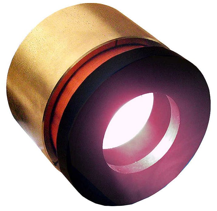 A low inertia hollow core voice coil or moving coil linear motor from Moticont (Van Nuys, CA), the HVCM-051-025-019-01, features high acceleration, precise positioning to less than one micron (0.00004 in.), high reliability, and low cost. This cleanroom friendly, non-commutated motor has an open aperture of 0.750 in. (19.05 mm). The hollow core allows for optics, illumination, laser beams, or cables to pass through. With a 0.50 in. (12.7 mm) stroke length, a continuous force rating of 4.8 lbs (21.3 N) and a peak force of 15.15 lbs (67.4 N) at a 10% duty cycle, this compact voice coil motor measures just 2.000 in. (50.8 mm) dia. X 1.00 in. (25.4 mm) housing length.