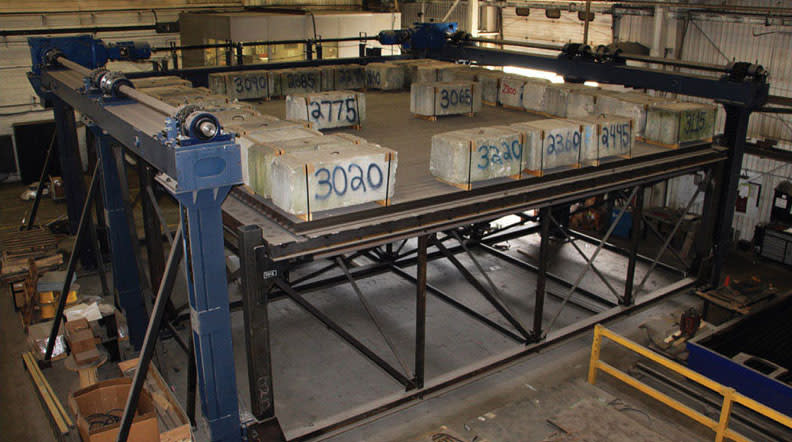The lifting carriage consists of a 35 × 35-foot platform. Beneath it is an 11-foot-tall structure for support of the platform.
