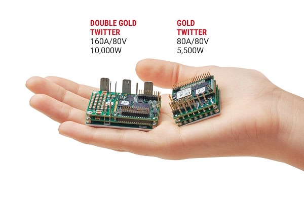 Elmo Motion Control (Nashua, NH) offers the Double Gold Twitter ultra-small servo drive and the Platinum Maestro motion controller with up to 256 axes. The drive is STO-certified (IEC 61800-5-2, SIL-3) and delivers more than 10,000 W of qualitative power with a weight of 1.2 ounces and continuous currents of 160A (80V) and 140A (100V). The miniature drive can be placed on a moving load, on the motor or inside the motor, helping to save space, reduce cables, and eliminate electrical cabinets.