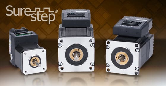 AutomationDirect (Cumming, GA) offers SureStep integrated drive/ motor units that provide accurate microstepping position and speed control for smooth motion and step response. They require only two components: power supply and integrated stepper motor/drive. Standard and advanced motor/drives are available. They feature torque from 54 to 340 oz-in and software-selectable resolutions ranging from 200 steps per revolution. The drives can operate with traditional high-speed inputs but can also be commanded via 0–5V analog input. An internal indexer can accomplish point-to-point moves controlled via ASCII communication. Free SureMotion Pro drive configuration software is available for advanced integrated motor/drives to configure and set up the drive, including drive, motion control mode, I/O, and motor. A Status Monitor screen aids in troubleshooting alarms and faults.