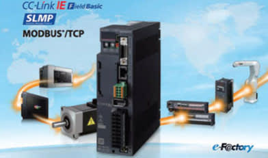 Gibson Engineering (Norwood, MA) offers the MR-JE-C servo and compatible HG-KN and HG-SN motors featuring One-Touch Tuning™ that sets gains and filters in real time, continuously tuning to optimize gains, minimize setting time, and eliminate cumulative errors. Inherent MR-JE servo features support pulse train command, analog voltage command, and absolute position detection. The CC-Link IE Field Basic one-network solution enables seamless connectivity within all levels of manufacturing by SLMP (Seamless Message Protocol). This feature allows CC-Link IE Field Basic Network-compatible products and Ethernet-compatible products to be connected on the same Ethernet-based network. The motors also support Modbus TCP/IP communication over Ethernet for communication directly to the drive.