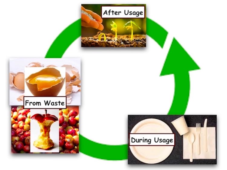 This project utilizes two of the top 10 sources of waste: fruit and eggs. These are used to build plastic-like structures that are biocompatible and biodegradable. The product is an eggwhite-based polymer strengthened by biocompatible additives including microfibril cellulose from waste fruit and egg shell nanoparticles. A possible route for the product after usage is going to farms to be used as fertilizer. The product could be used to make disposable plates, cups, and cutlery.