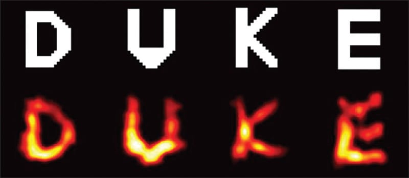 While the best results were achieved with a 100-second exposure time, good results could still be obtained with much shorter times. After only a few seconds of processing, the computer successfully returned the individual images of a D, U, K and E from the sequence. The researchers then showed the approach also works when the scattering medium is changed, and even when both the images and scattering mediums are changing.