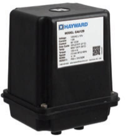 Hayward Flow Control (Clemmons, NC) announced the EAU1 Series compact quarter-turn actuator featuring an ISO5211-compliant mechanical mount. It can be direct-mounted to thermoplastic or metal quarter-turn valves. Rated at 120 in.lbs. in unidirectional on/off control, the actuator requires only three wires for complete control. An auxiliary switch is available for remote indication of open and closed positions. All field terminations are via a terminal strip located under the top cover. It features a corrosion-resistant glass-filled polypropylene housing with NEMA4/4X rating. All gearing is hardened steel. The actuator is available in 12 vac or vdc, 24 vac or vdc, 120 vac, and 230 vac voltages.