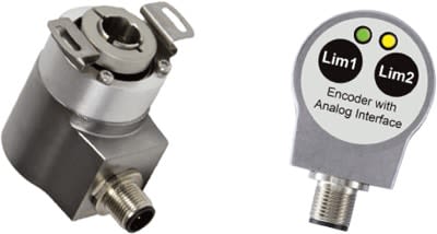 FRABA (Hamilton, NJ) offers POSITAL analog programmable rotary encoders for position control that accept a wide range of supply voltages. Outputs are either voltage (0-5V, 0.5-4, 5V, 0-10V, or 0.5-9.5V) or current (4-20 mA). The magnetic measurement mechanism is wear-free. The analog encoders are programmable with measurement characteristics that can be customized to meet specific application requirements. Programming can be carried out at the factory, in a distributor's warehouse, or at the customer's jobsite using the UBIFAST programming tool. Programmable characteristics include direction of rotation (CW or CCW), zero set, and the encoder output range. Measurement range programming allows the full range of electrical outputs (voltage or current) to be set to match a user-defined range of mechanical motion. For single-turn models, the measurement range can be set to 90°, 180°, 270°, or 360°. For multi-turn models, the range can be set anywhere between 1 and 65,536 complete rotations. Analog encoders are available with pushbuttons on the housing that enable the user to specify the upper and lower limits of the mechanical motion, with the electrical output fully spanning this range.