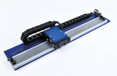 The LSS-016-04-006-01A-ME from H2W Technologies (Santa Clarita, CA) is a low-profile linear stepper motor positioning stage that integrates an absolute linear encoder and a single-axis linear stepper motor stage. This enables the stage to operate as a two-phase brushless linear motor when coupled with motion control electronics. Operating as a brushless linear motor, the motor tends to run cooler as it only draws current when needed to hold the desired position or make a move. The stage uses STS-0620-R linear stepper motors to generate a force of 6.0 lbs (26.7 N) with a total stroke length of 16" (406 mm). The 1.0-micron-resolution absolute encoder allows for precise positioning. High-flex power cables for the motor and encoder are guided by a cable carrier and the cables are terminated into standard D-subminiature connectors. The stage can run in horizontal or vertical orientation.
