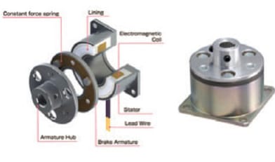 Model 112 electromagnetic micro-brakes from Miki Pulley (Plymouth, MN) are a high-performance braking solution for small, precise motion control applications. The compact design enables fast response in high-torque applications and features a stator with integrated mounting flange, proprietary composite friction liner, and armature with ring plate spring and hub. The brakes halt rotation mechanically by utilizing an electromagnetic field to create mechanical friction. The brake's armature engages the stator when the coil is energized. A constant-force plate spring transfers torque to the rotating brake body, halting all motion. They are available in three armature assembly options depending on application requirements.