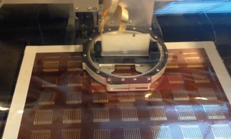The biosensor chip was partially constructed using an inkjet printer, which layers nanoparticle inks onto a plastic surface to create an array of electrodes. The printed biosensor chip was deposited into a prefabricated microfluidic device that directs fluids to flow in a controlled manner. It can measure levels of the protein HER-2, which when found at abnormal levels, indicates a specific breast cancer type. Knowing the type helps determine treatment.
