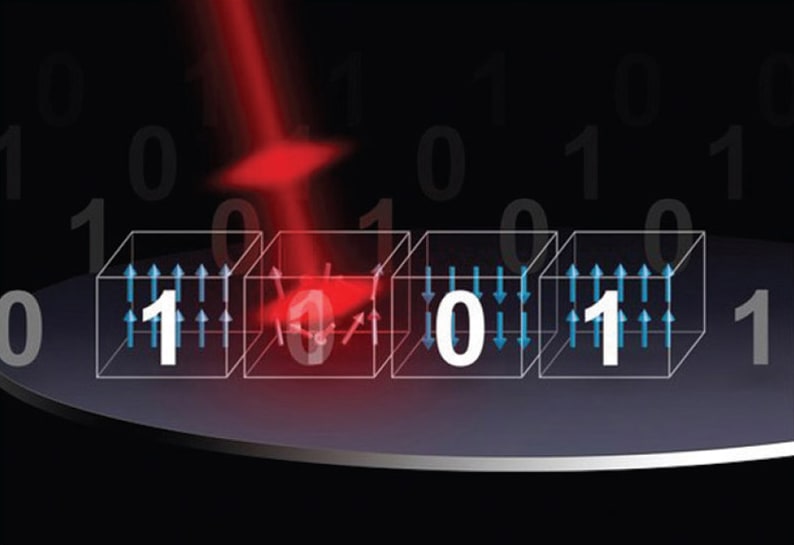 Data are stored in hard drives in the form of bits — tiny magnetic domains with a North and a South pole. The direction of these poles (magnetization) determines whether the bits contain a digital 0 or a 1. Writing the data is achieved by switching the direction of the magnetization of the associated bits. Conventionally, the switching occurs when an external magnetic field is applied, which would force the direction of the poles either up (1) or down (0). Alternatively, switching can be achieved via the application of a short (femtosecond) laser pulse, called all-optical switching, and results in more efficient and much faster storage of data.