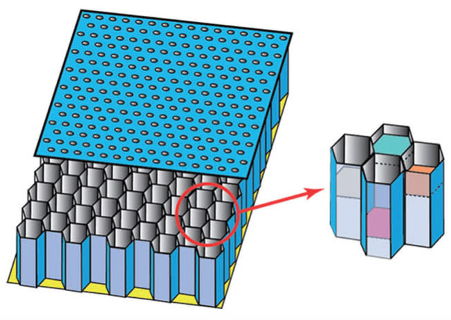 NASA Langley Research Center has developed a new approach for designing aircraft liner cores for noise reduction. The cores are comprised of multiple honeycomb-shaped chambers, each of which may contain one or more embedded porous septa. By varying the resistance and insertion depth of the septa between adjacent honeycomb core chambers, the number of tuning frequencies is increased for the full liner. High-resistance septa can also be used to change the effective chamber depth. Together, these design features cause the acoustic liner to absorb sound over a broad frequency range.