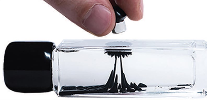 In 2008, when Nikola Ilic came across an online video of moving ferrofluid sculptures by Japanese artist Sachiko Kodama — with black liquid rising into swirling bristles that joined into quivering spikes — the artist-entrepreneur immediately wanted a ferrofluid display for his desk. But he couldn't find one for sale anywhere online. So he decided to make his own and soon learned why more people weren't doing it. “It stains everything,” said Ilic. In a typical display, a small amount of dark ferrofluid is placed in a clear glass chamber full of a clear suspension liquid. It's then manipulated by a magnet outside the chamber. But if the ferrofluid mixes with the suspension liquid, the dark fluid quickly stains the glass and makes a mess.