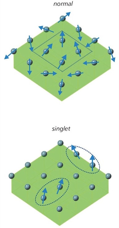 Anew type of magnet — called a singlet-based magnet — was discovered that differs from conventional magnets in which small magnetic constituents align with one another to create a strong magnetic field. By contrast, the singlet-based magnet has fields that pop in and out of existence, resulting in an unstable force, but one that potentially has more flexibility than conventional counterparts.