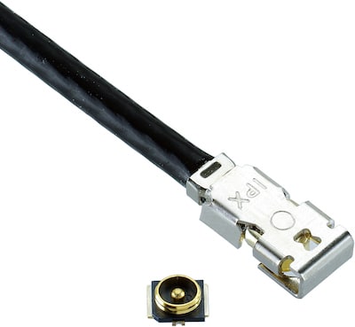 The MHF 4L LK Micro RF coaxial connector from I-PEX Connectors, Austin, TX, offers a locking feature to prevent it from disengaging from the PCB receptacle. It has a mating height of 2.0 mm and uses 1.37-mm OD coax. It is designed for shock and vibration environments where signal performance is critical.