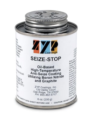 ZYP Coatings, Oak Ridge, TN, offers Seize-Stop non-metallic anti-seize coating formulated with lubricating oil and powder lubricants. It provides protection in industrial applications where metal-containing products are not allowed. It is suited for most metals and prevents seizing, corrosion, rusting, and galling between metal parts.