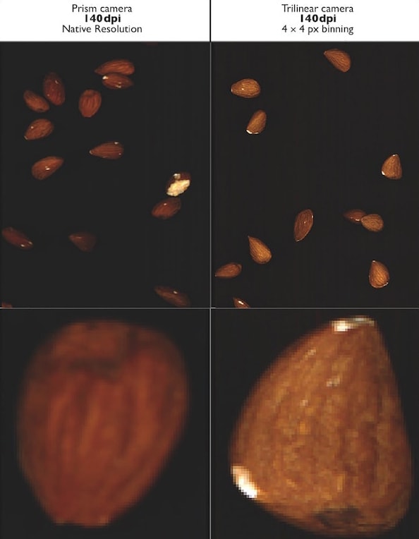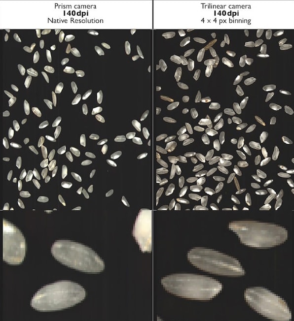 Traditionally, prism-based cameras are often selected over trilinear cameras when it comes to bulk material scanning, as the inherent line-shift of a trilinear camera can only be corrected when the object scan velocity is known. In this article it is demonstrated that the traditional approach is not always necessary if the right trilinear sensor is selected and operated in binning mode to average multiple pixels.