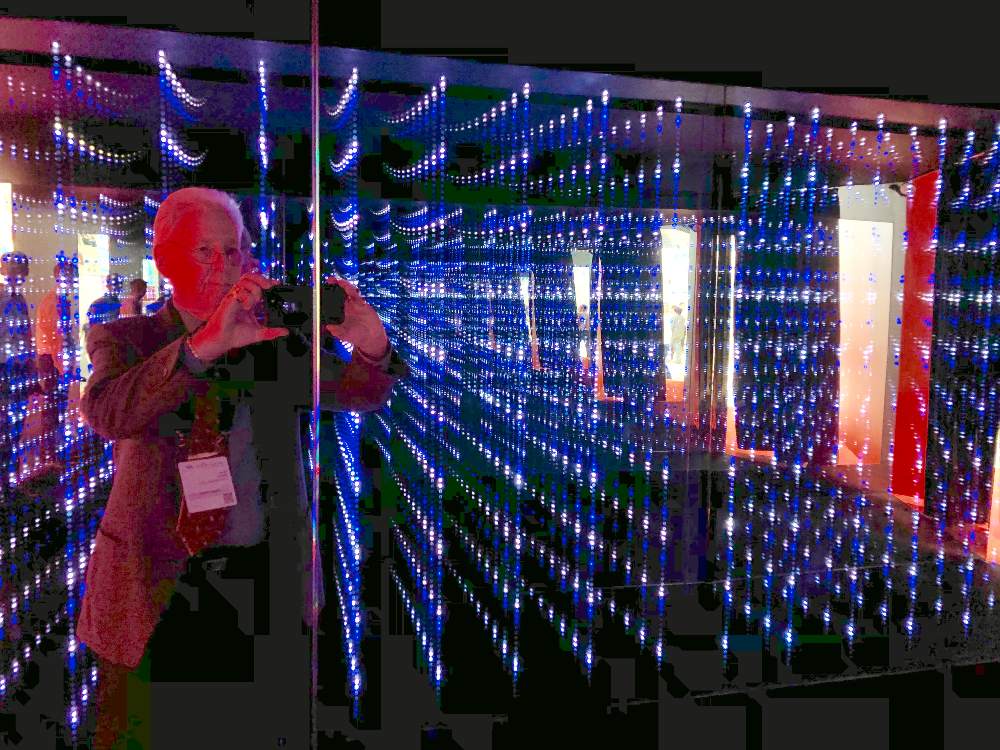 Last but certainly not least, Laser Components deserves some kind of creativity award for something they called “The Art of Photonics.” One entire corner of their gargantuan booth was a dark tunnel lined with mirrors and what looked like thousands of flashing colored LEDs. In reality it probably wasn’t that many; it was an optical illusion created by the mirrors. But had they thought to add music and a disco ball, they probably could’ve charged admission.