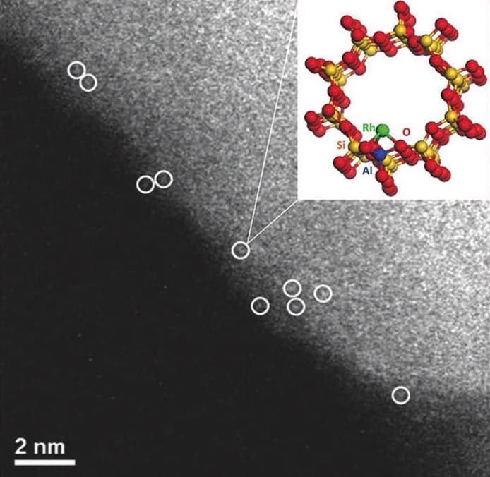 Supported Rh catalysts were prepared through relatively simple synthesis procedures. The main focus was to atomically disperse the rhodium species, which was achieved by a special heat treatment protocol on the zeolite support and by anchoring rhodium precursor species on reduced titania assisted by UV irradiation. The atomic rhodium state is necessary for the reaction to occur.