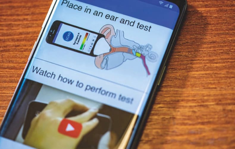 Ear infections occur when fluid builds up in the middle ear behind the eardrum and becomes infected, making it painful and hard for children to hear. The smart-phone app can detect fluid behind the eardrum by simply using a piece of paper and a smartphone’s microphone and speaker. The smartphone makes a series of soft audible chirps into the ear through a small paper funnel and depending on the way the chirps are reflected back to the phone, the app determines the likelihood of fluid present with a probability of detection of 85%. This is on par with current methods used by specialists to detect fluid in the middle ear that involve specialized tools using acoustics or a puff of air. The funnel rests on the outer ear and guides sound waves in and out of the ear canal. When the phone plays a continuous 150-millisecond sound — which sounds like a bird chirping — through the funnel, the sound waves bounce off the eardrum, travel back through the funnel, and are picked up by the smartphone’s microphone along with the original chirps. Different sounds are made depending on how much liquid is in the ear.