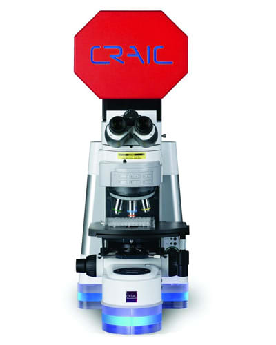 CRAIC Technologies (San Dimas, CA) announced the addition of Raman and Photoluminescence microspectroscopy to its flagship product: the 20/30 Perfect Vision™ microspectrophotometer. Users of the 20/30 PV™ now have the ability to acquire Raman and Photoluminescence spectra, with lasers from the blue to the near infrared, in addition to UV-visible-NIR absorbance, reflectance, fluorescence and emission microspectra™. The 20/30 PV™ is able to acquire all these types of spectra of even sub-micron samples rapidly and easily. Better yet, the 20/30 PV™ is able to acquire all these spectra from the same area because it features CRAIC Technologies proprietary optical aperturing technology. Additionally, the 20/30 PV™ features the ability to acquire images of these same microscopic samples in the UV, visible and NIR regions.