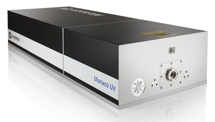 The new Coherent (Santa Clara, CA) Monaco UV (345 nm) femtosecond laser delivers the combination of pulse energy and repetition rate (20 µJ/pulse at 1.25 MHz) that best matches the ablation threshold of commonly utilized materials. The monolithic Monaco UV is also the most compact (L=963 mm x W=358 mm x H=175 mm) industrial femtosecond UV solution available, simplifying integration for the system builder. Additionally, the Monaco UV utilizes the same software interface as the rest of the Monaco family. Monaco UV also utilizes the rigorous HALT/HASS design, manufacturing, and testing protocols employed in the company’s other high-reliability ultrafast and UV lasers.