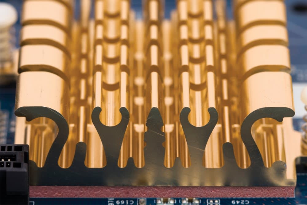 Fujipoly America Corp., Carteret, NJ, offers Sarcon® GR-Ae gel-like thermal interface material that can be die-cut to fit electronic components of almost any shape. The gap filler pad is available in multiple thicknesses ranging from 0.5 to 5.0 mm. When sandwiched between heat-generating components and a heatsink, the material fills air gaps and delivers a thermal conductivity of 1.3 W/m•K with a thermal resistance as low as .50 °C•in2/W.