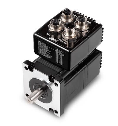 Applied Motion Products (Watsonville, CA) introduced the SWM24IP-3DE integrated stepper motor and the TXM24IP-IDG StepSERVO™ integrated motor. The NEMA 24 frame integrated motors with dual-port communications connect to the industrial EtherNet/IP network of a plant or machine. By incorporating two M12 EtherNet/IP connectors instead of one on each axis, the motors support topologies such as line networks and daisy-chain connections. All drive and motor features are accessible over the EtherNet/IP network including more than 100 commands and 130 registers for controlling motion, I/O, configuration, polling, math, register manipulation, and Q programming. The motors feature a NEMA 24 (60-mm) mounting flange and include a built-in encoder for enhanced positioning capabilities.