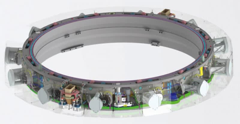 maxon's engineers developed two drives for SENER that can be used to execute a huge variety of functions. This first drive consists of two brushless EC-4pole motors and a GPX UP gearhead. Twelve of these actuators power the locking hooks in the IBDM docking mechanism. The second drive combines a flat motor with a planetary gearhead. It is used in 11 places to manage the plug-in connections and the retaining eyes as well as other ancillary functions.