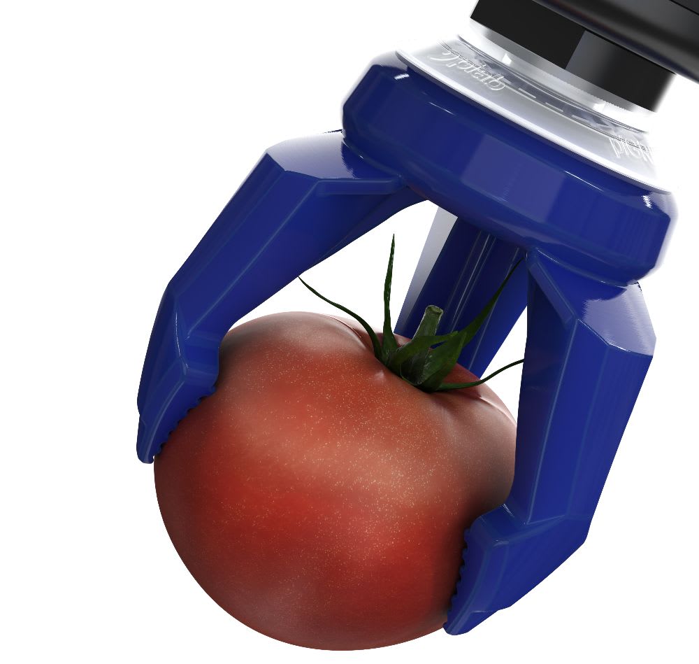Piab (Hingham, MA) offers the piSOFTGRIP® soft gripping tool, a vacuum-based soft gripper that grips sensitive and lightweight objects of odd geometries and/or an unusual surface. The tool has three gripping fingers and a vacuum cavity, all made in one piece. Gripping force is adjusted and controlled by the applied vacuum level. It can grip objects with a diameter of up to 50 mm (1.97”). Made in detectable silicone approved for direct contact with food, the gripper enables the food industry to extend their automated food handling to include a wider range and is also a lightweight automation tool, which means that very little extra weight is added when fitted to robot arms. It has a building height of approximately 80 mm, allowing it to be used where space is limited. The tool features compressed air saving functionality (ES), so virtually no energy is needed to perform a grip and release.