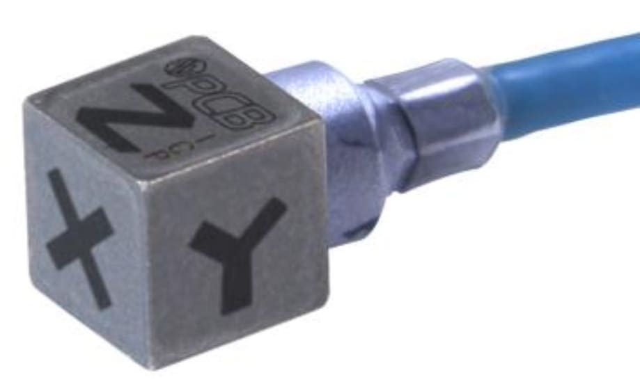 PCB Piezotronics (Depew, NY) released Model 356A04 and 356A05 ICP® triaxial shock accelerometers designed for electronic drop testing at accelerations up to 5,000 and 20,000 g's, respectively. They are suited for measuring shock and vibration in space-restricted locations and on systems sensitive to mass loading. The miniature accelerometers feature two different sensitivity options: 1.0 mV/g (Model 356A04) and 0.25 mV/g (Model 356A05). Each has a flexible integral cable for ease of cable routing. The high overload shock limits reduce the potential for sensor damage or signal saturation during testing. The sensors are packaged in a hermetically sealed titanium housing and are powered by any ICP signal conditioner or data acquisition system that provides an excitation voltage of 18 to 30 VDC at 2 to 20 mA of constant current.