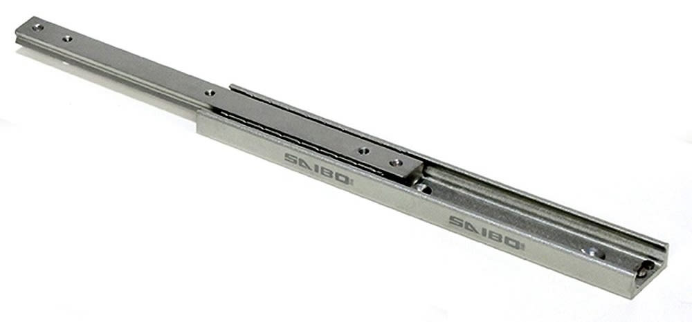 LM76 (E. Longmeadow, MA) offers SAIBO TPE28 and TPE43 series partial extension rails. The compact, precision sliding rails are assembled with a zero clearance and are created using a C-shaped external rail and an internal slider. Two rows of steel ball bearings (one on the top and bottom of the slider) travel in ball cages on hardened V-shaped ways with four points of contact. The rails are suited for applications requiring smooth motion such as material handling, wafer handling, delicate parts transfer, assembly, testing, and drilling. The TPE28 series consists of 14 rails with stroke lengths from 72 mm (2.834”) to 601 mm (23.661”) and supporting loads from 1224 N (275 lbs) to 15,166 N (3409 lbs) when two rails are mounted in parallel and the load is uniformly distributed between the rails. The TPE43 series consists of 23 rails with stroke lengths from 123 mm (4.842”) to 1013 mm (39.881”) and supporting loads from 3192 N (717 lbs) to 48460 N (10,894 lbs) when two rails are mounted in parallel and the load is uniformly distributed between the rails. Both have operating temperature range of -20 °C to 120 °C.