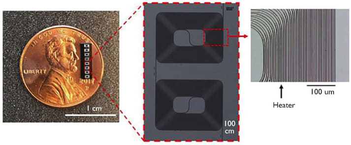 The researchers coiled a 0.4-meter Si3N4 delay line into a compact 8 mm2 area and integrated the microchip with micro-heaters to optically tune the heat sensitive Si3N4. Using the heaters enabled them to achieve delay without any moving parts, thus providing high stability, which is important for image quality of interference-based applications.