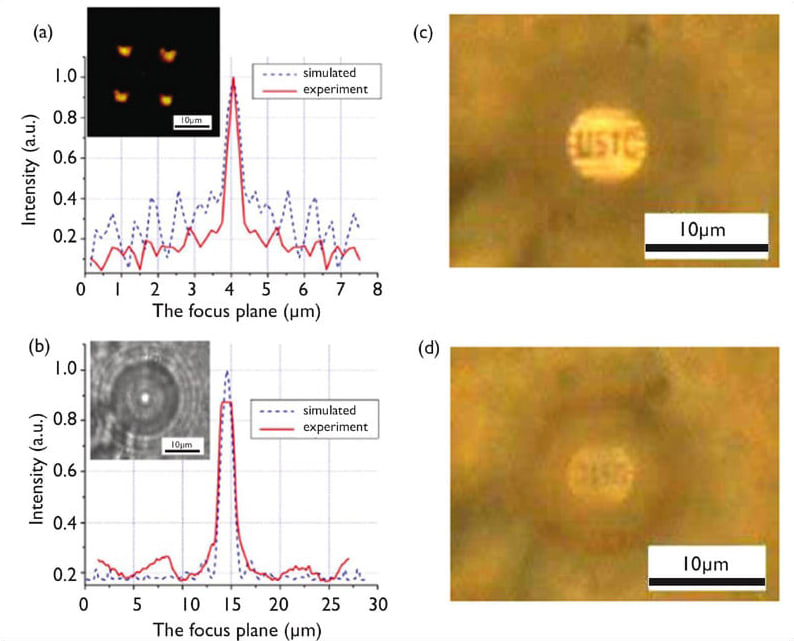 Using two-photon polymerization (TPP), Guo et al[1] fabricated a 2 × 2 spherical microlens array (diameter: 15 μm) and a Fresnel lens (diameter: 17 μm). Larger MLAs on the scale of hundreds of microns are reported by Chung et al.[2] In the same manner, cylinder and axicon MLs were fabricated by Li et al[3] with a resolution of up to 1.5 μm. Laser beam scanning is the common method used in MPS experiment setups. In this technique, a combination of linear stages and galvano mirrors are normally used.