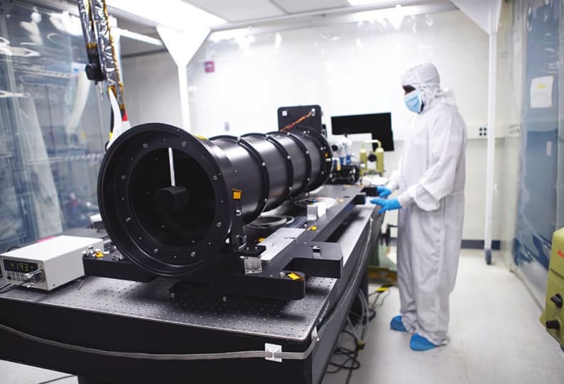 Typical coronagraphs use a wheel that cycles through polarizer filters — each oriented to different angles — and combine the images to get the polarized light. BITSE’s polarization camera analyzes the observations pixel by pixel, making the process more reliable by reducing the number of moving parts.
