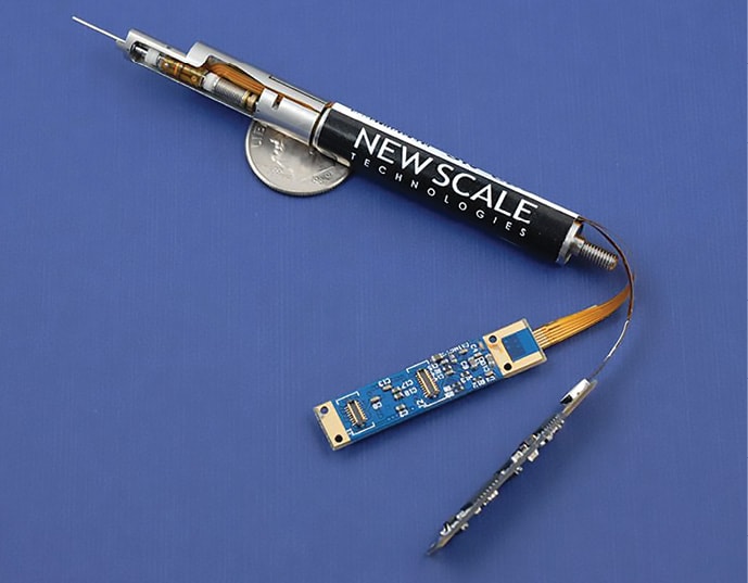Nevertheless, New Scale’s products are showing up in a variety of contexts, including medical instruments. One, a portable blood analyzer, uses a positioner to provide focus for an embedded microscope. The analyzer fits in a backpack and can field-test someone for HIV.