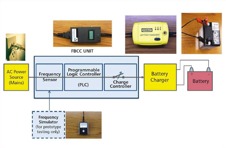 To counter these challenges, a “smart” frequency-based charge controller system was developed for electric vehicles that provides automatic demand response and regulation service to the grid by reducing or turning the charging load completely off if the system frequency falls below a given threshold and turning it back on after the balance of supply and demand has been restored. The system minimizes the burden on the power grid and provides significant benefits to electric utilities by providing a frequency-responsive load.