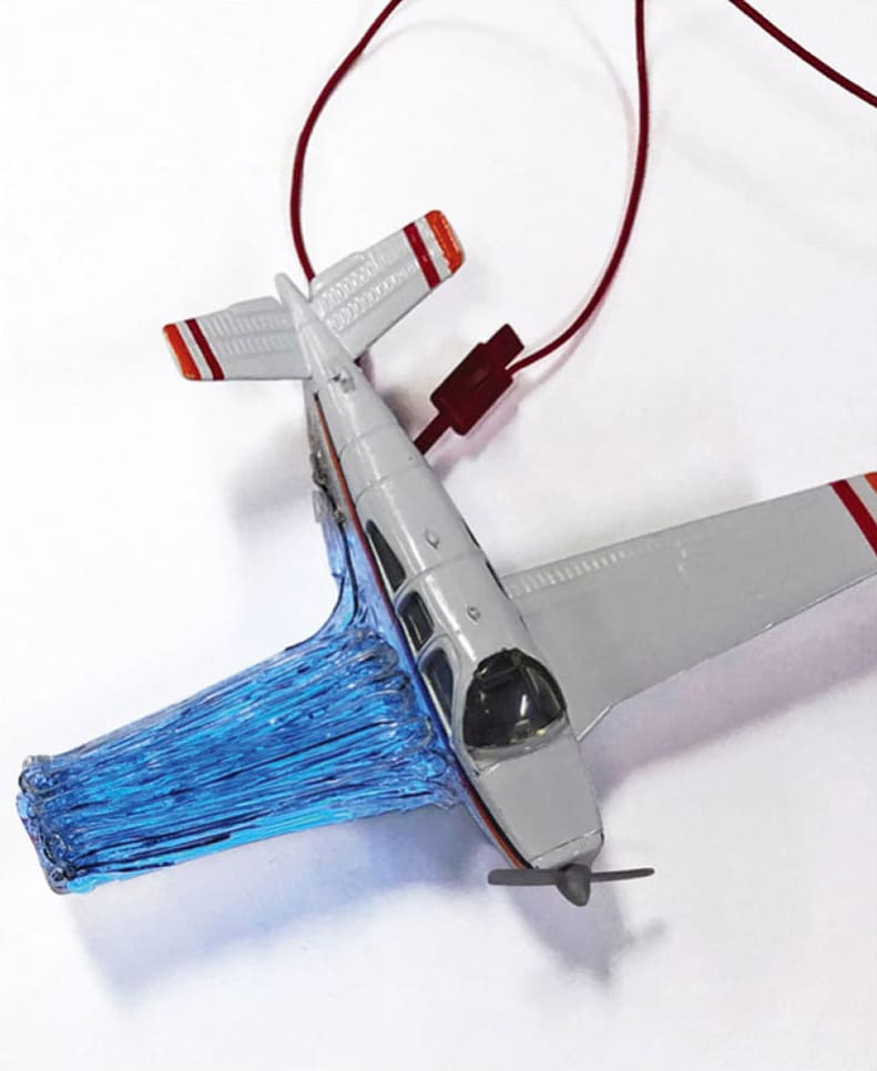 The internal components in the filament include metal wires that serve as conductors, semiconductors that can be used to control active functions, and polymer insulators to prevent wires from contacting each other. As a demonstration, the team printed a wing for a model airplane using filaments that contained both light-emitting and light-detecting electronics. These components could potentially reveal the formation of any microscopic cracks that might develop. While the filaments used in the model wing contained eight different materials, in principle they could contain even more.