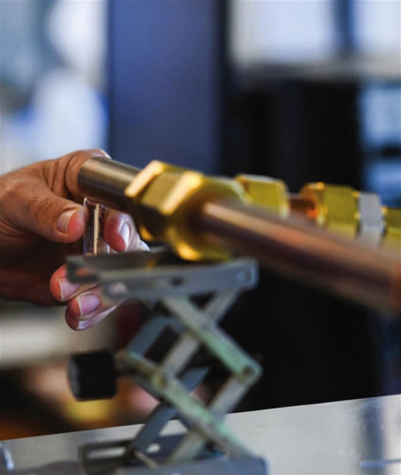 The technology works by sucking an air sample into a narrow metal tube. Inside the tube, the sample collides with chemical ions and creates a positive or negative charge on the way toward the inlet of a mass spectrometer. The mass spectrometer measures, or detects, the ions of interest based on their charge and mass. Users can adjust the ionization source to selectively react with the compound of interest.