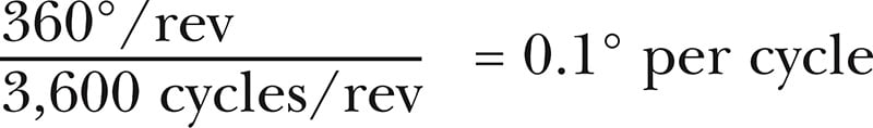 CPR, then, can refer to the number of lines and windows on the disk or the number of electrical cycles in one rotation. Native CPR will be the same number in either case because each line/window pair is exactly what generates each electrical cycle. CPR also gives us the smallest distance that can be measured. Divide the total distance of 360 mechanical degrees by the number of cycles per revolution and the answer will be mechanical degrees per cycle; for example, with an encoder resolution of 3,600 CPR: