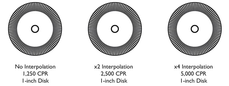 The resolution of a disk is tied to physical reality — physical lines on a physical disk. The number of lines, in its most basic form, is the resolution; however, a motion controller can interpret the output waveforms resulting from those lines and produce higher resolutions from the same disk.