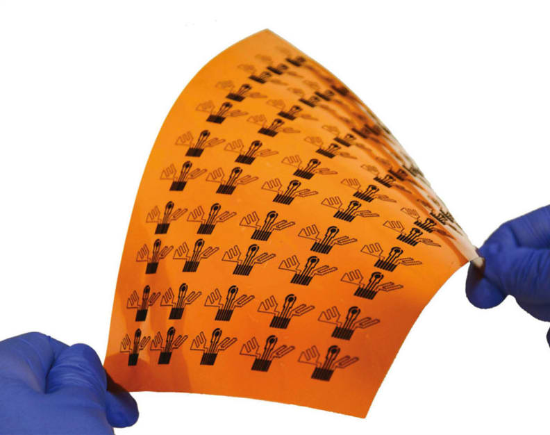 Wearable Sensor. A mass-producible wearable sensor can monitor levels of metabolites and nutrients in a person’s blood by analyzing their sweat. Such sensors would allow doctors to continuously monitor the condition of patients with illnesses like cardiovascular disease, diabetes, or kidney disease, all of which result in abnormal levels of nutrients or metabolites in the bloodstream. The microfluidic-based wearable sensor is made of graphene, a sheet-like form of carbon. The sensor measures respiratory rate, heart rate, and levels of uric acid and tyrosine.