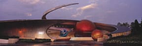 In the entrance of the ISTC's Astronaut Recruitment Center, guests see the motto, "We choose to go!", taken from one of President Kennedy's speeches: "We choose to go to the Moon…not because it is easy, but because it is hard." In the Recruitment Center, visitors learn about astronaut training and see a model of the ISTC's X-2 Trainer, the futuristic spacecraft they will board to embark on their mission to Mars. While the X-2 is the creation of Disney Imagineers, it is based on scientific fact and theory provided by scientists, engineers, and future-thinkers from NASA and private industry.