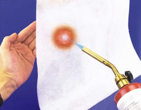 Despite its paper-thin characteristics, Nextel Dot Paper withstands fire without burning or shrinking. The unique "dots" help to maintain the paper's integrity and flexibility. Testing at the Federal Aviation Admin-istration's William J. Hughes Technical Center shows that the Flame Stopping Dot Paper resists flame pene-tration for greater than 4 minutes at a temperature of 2,000 °F (1,093 °C). In addition to fuselage burn-through applications, Nextel Dot Paper can be used for added protection in galleys, cockpits, cargo bays, firewalls, fire doors, ducting, insulators, gaskets, seals, and fire-resistant storage.