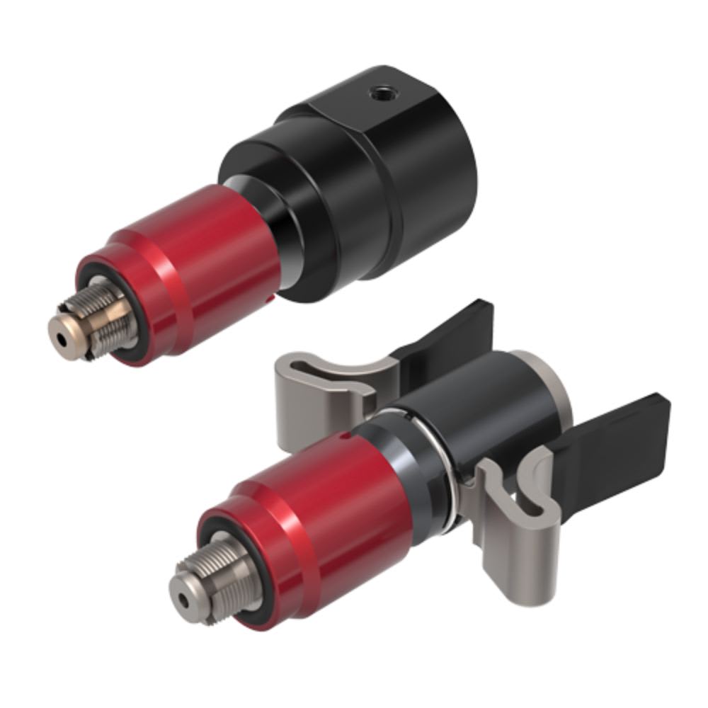 The tool incorporates a floating sleeve combined with a collet for consistent sealing. A single connector will mate with different thread forms including straight, tapered, or metric.