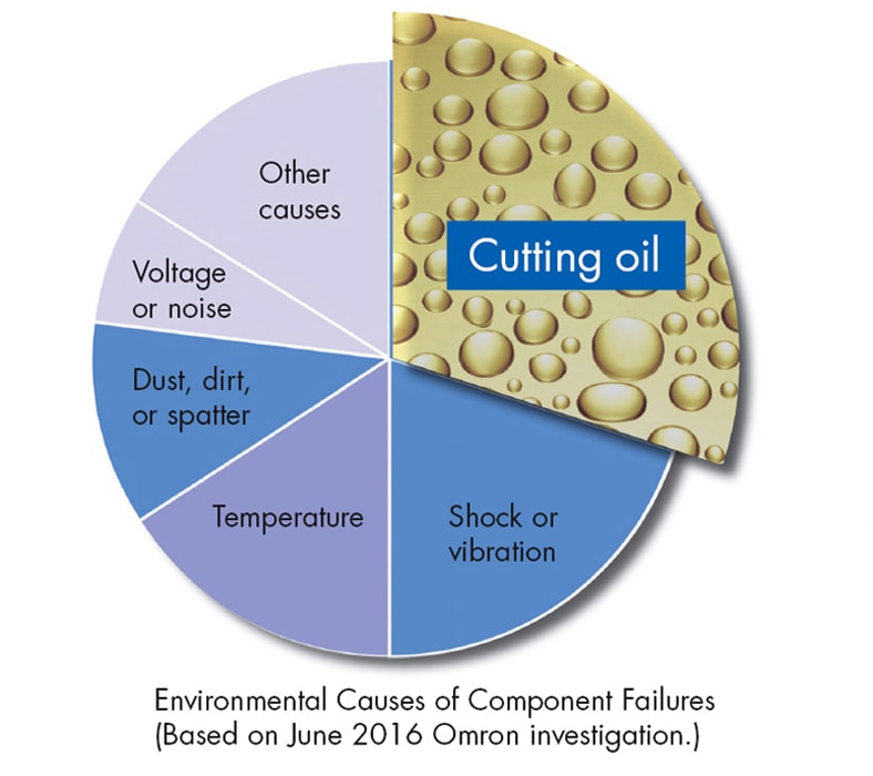 In automotive applications and metal pipe cutting, a common cause of sensor breakdown is cutting oil. Oil-resistant sensors that are rated IP67G provide rugged durability for harsh environments, so manufacturers that use the cutting fluids can eliminate oil ingress by any path, which in turn will minimize unexpected machine downtime and lower the cost of ownership of their equipment. These sensors successfully keep oil out by means of fluororesin cable sheaths that provide extra-strong resistance to deterioration and boost protection at joints and moving sections.