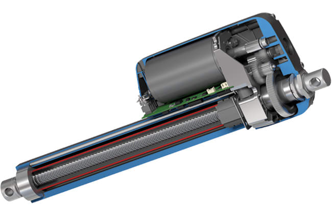 Thomson Industries (Wood Dale, IL) offers Electrak HD™ electric linear actuators that enable design engineers to convert hydraulic applications to electric. The actuators boost power to 10 kN (2250 lbs) with stroke lengths up to 1000 mm (39"). The actuators meet environmental and electronic component acceptance tests, including IP69K for harsh environments. Optional SAE-J1939 CAN bus communication enables controllability and diagnostics on machines compatible with the SAE-J1939 CAN bus protocol. Options include low-level switching, end-of-stroke indication output, and a choice of analog or digital position feedback. The actuators offer speed options up to 75 mm/s (3 in/sec) on some models, and operate in temperatures ranging from -40 to + 85 °C (- 40 to + 185 °F).